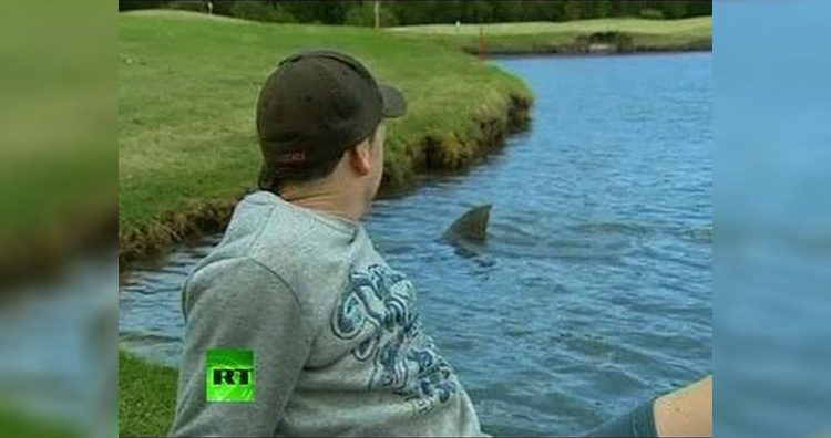 4 In a golf course in Brisbane, the local wildlife includes at least six bull sharks who accidentally found themselves in the lake after a flood in 1996 brought them there. They now have a golf tournament named after them. Image source: RT video screengrab