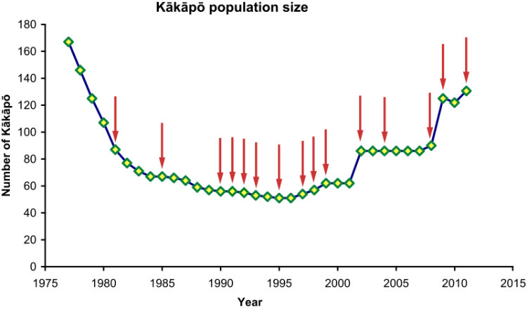 The next year, there was a new management plan which was to be implemented between 2006 and 2016 to increase female population and genetic diversity in the population. To accomplish this, two large Fiordland islands, Reservation and Secretary, were restored ecologically and the birds were re-introduced. By 2016, the population finally reached to 154, with 116 adults.