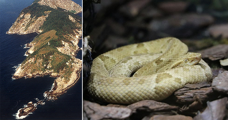 Commonly known as Snake Island, the island is filled with the extremely venomous golden lancehead pit viper with one snake per square meter.
