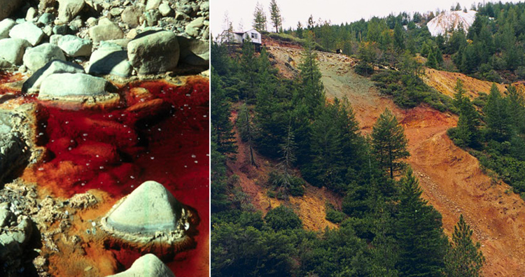 In the 1890s, a company by the name of Mountain Copper established a 4,400-acre mine at the site. They began to supply sulfuric acid to refineries in the Bay Area. They became the largest copper mine in California in the 1900s. Twenty cavities the size of office buildings were drilled into the rock. Excessive mining activity at the site ultimately fractured the mountain. This, in turn, exposed the underlying minerals to contact with water, rainwater, and oxygen. They combined to create a poisonous runoff. The result was the worst concentration of acid in the world, about 500 times more toxic than any other mine.