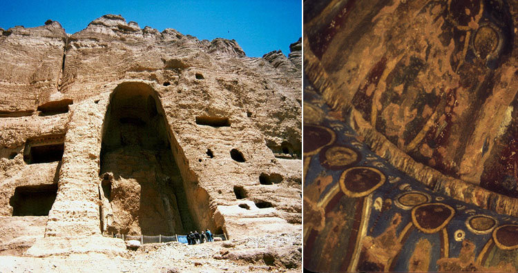 The destruction of the statues revealed 50 caves behind them, and the caves contained a number of important discoveries including the world’s oldest oil paintings.
