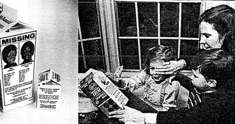 In the 1980s, there was a practice in the US to put advertisements of missing children on milk cartons. The first to appear were photos of Johnny Gosch and Eugene Martin who went missing while delivering newspapers. By March 1985, 700 of 1,600 independent dairies adopted this practice.Â