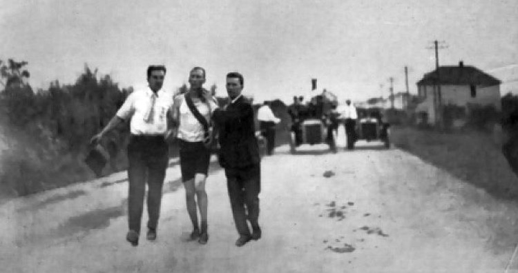 Tom Hicks, Marathon Olympic Champion and his supporters at the marathon. St. Louis Olympic Games, 1904. Image Credit: Wikipedia
