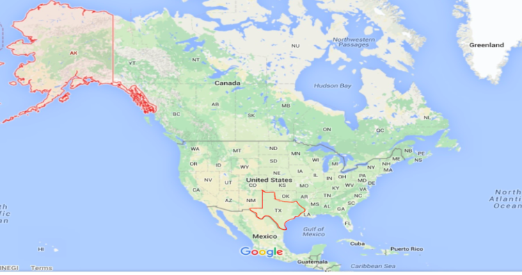 5 Alaska is so big that cutting it in half would make Texas the third biggest state.Alaska vs Texas comparison. Image Credit: Google Maps