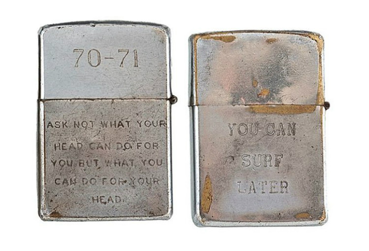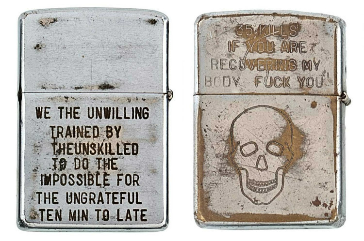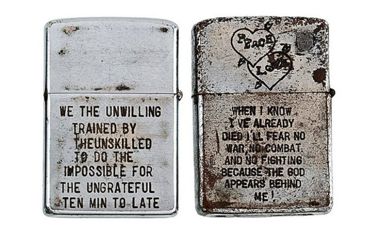 Image Source: Cowan’s Auctions 9 Most of the messages engraved on the lighters mirror the attitudes of Americans and the world towards the war in Vietnam at that time. While some are simply humorously rhyming lines.