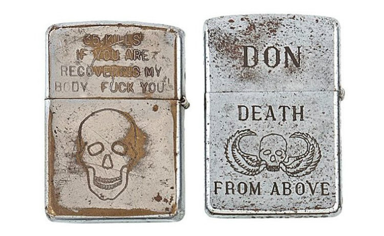 10 Some of the lighters feature proud emblems and words of the soldiers who are proud to be fighting in the war and the glory associated with it.
