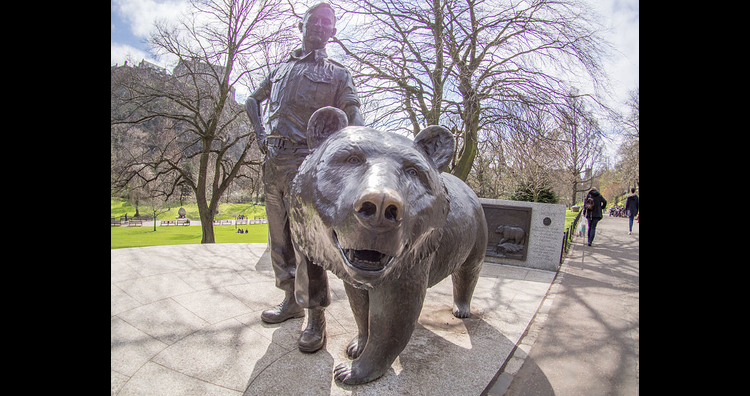 A statue of Wojtek the Bear in Princes Street Gardens, Edinburgh, Scotland. Image Credit: Taras Young via Wikipedia
