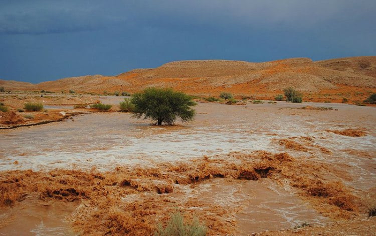 Though deserts often invoke pictures of extreme heat and lack of water to the mind, they are not strangers to rains and flowing streams known as arroyos and wadis. These streams are dry throughout the year except when it rains. Unfortunately, rains in deserts are sudden, infrequent, and heavy often resulting in flash floods. One of the storms in the Sahara delivered a record 44 millimeters of rain in just three hours, and large storms there are capable of delivering up to one millimeter of rain per minute.