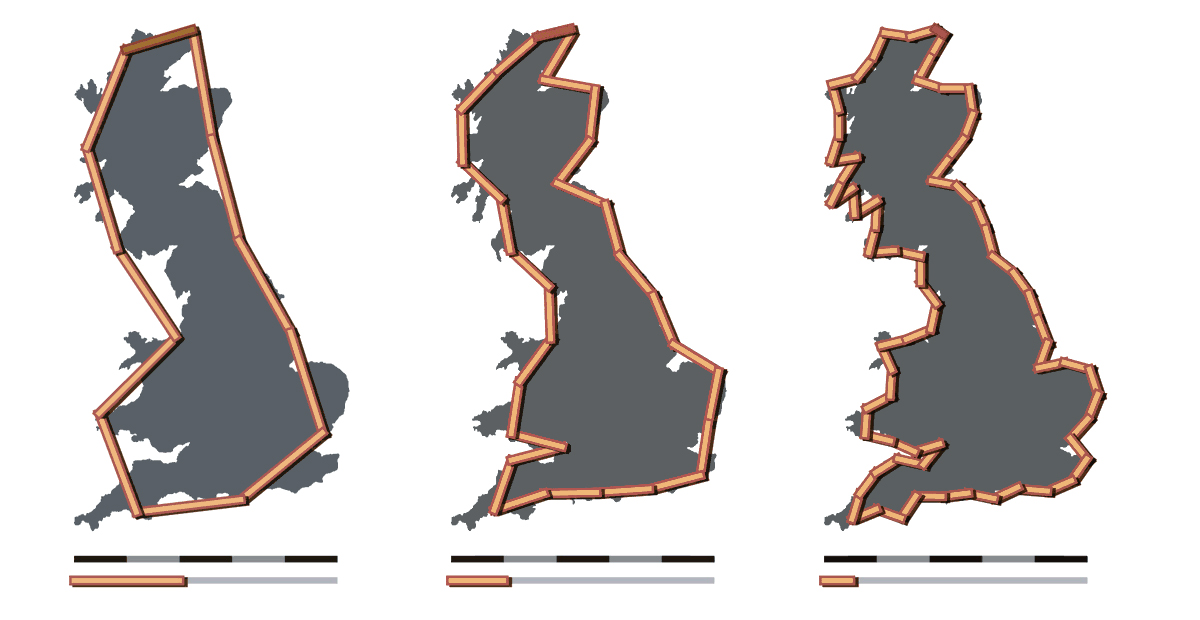 The numbers start getting unbelievable as you go higher. Fold it 30 times, and you are in space 107 kilometers above the Earth’s surface. Fold it 42 times (439,804 kilometers), and you are past the moon which is only 384,400 away. Fold it 51 times (225 million kilometers), and you are half way to Jupiter (588 million kilometers) or way past the Sun (149.6 million kilometers).