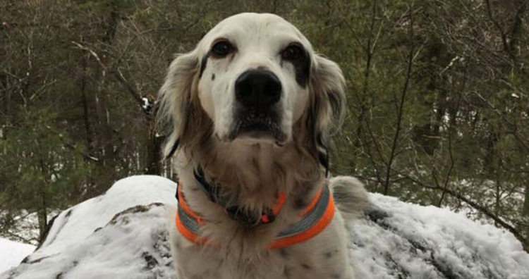 A 14-year-old English Setter dog named Pete gave his life while saving the life of a man who he lived with. Â The man, Stephen Parisi, and Pete and some puppies went on a hiking trip to Monkville Reservoir in New Jersey, United States. Â A black bear saw the intruders and attacked them. To save Parisi from the clutches of the bear, Pete threw himself into the fray and put up a fight.