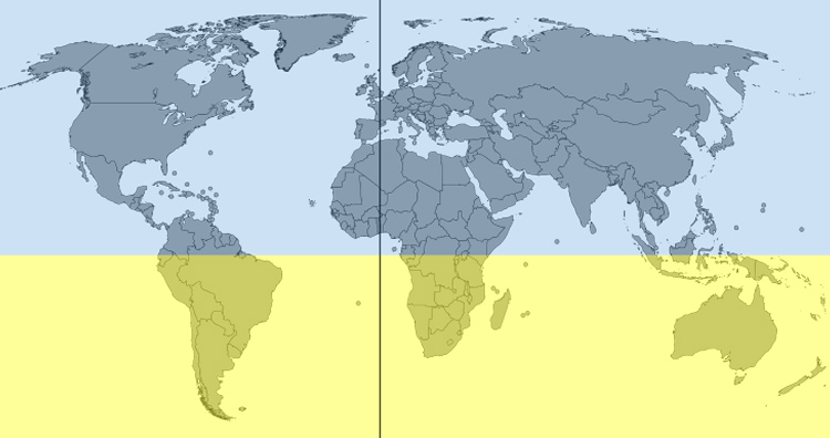 1 About 90% of all people live in the Northern Hemisphere.