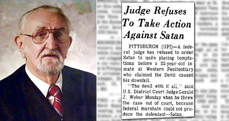 6 When a man sued Satan and his staff for causing him misery, the judge ruled that the âdevilâ cannot be produced in the court and found precedent in a story where Satan was a âforeign princeâ who could not be sued in American courts.Image credit: pawd.uscourts.gov, Huntingdon Daily News
