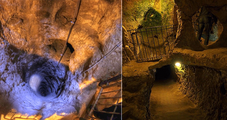 Turkey is home to over 200 ancient underground cities that have baffled archaeologists from around the world. One of those cities is Derinkuyu in the Nevsehir Province of Turkey. This multilevel city which has a depth of approximately 200 feet and is so huge that it could easily house 20,000 people along with their livestock and food storage. Apart from the usual rooms and facilities that were found in the other underground complexes in Turkey like chapels, wine, and oil presses, refectories, storage rooms, etc., Derinkuyu had a large room that is believed to have served as a religious school.