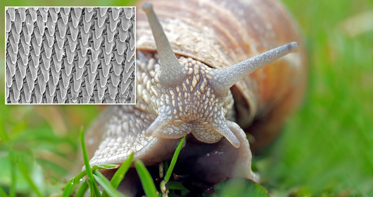 You look at the snail in the garden and how it takes forever to crawl a foot, and then you donât take a second look. Take one the next time because snails might be weird-looking creatures but are unique in their own way. An average garden snail has 14,000 tiny but strong teeth (thank heavens they do not have to brush or go to the dentist), and you can often hear them eating. Their teeth help them with eating things like leaves, soil, and fungi. They can also have more than 14,000 teeth arranged in 100 rows of 120 each on their radula (aka tongue). One aquatic snailâs teeth were tested for strength and it was found that their tensile strength exceeds that of Kevlar and titanium!