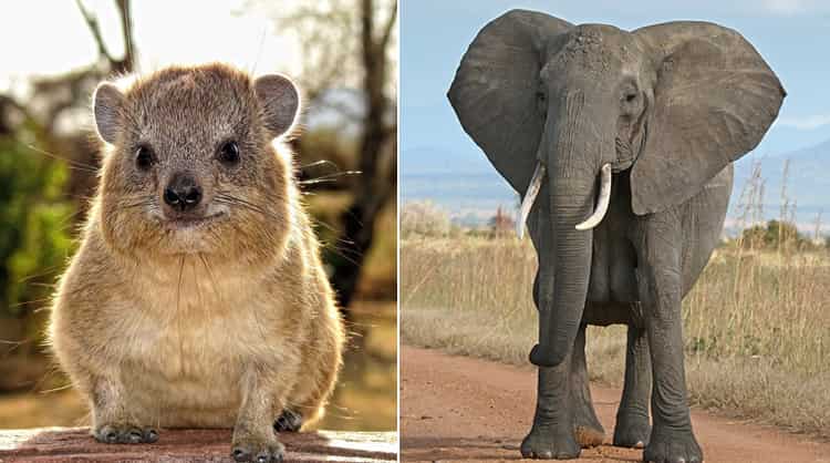 What would come to your mind when you think of an animal that is the elephantâs closest living relative? Something as huge as the elephant itself, or an animal that comes somewhere close? Probably, but it is really a rabbit-sized animal called as the rock hyrax. It is found across sub-Saharan Africa except in Madagascar and in the Congo basin. It only weighs around four kilograms. The herbivorous rock hyrax and the elephant both belong to the ancient Tethytheria clade of mammals. During prehistoric times, the elephant and the rock hyrax descended from two different paths of evolution which is why they are so drastically different. They continue to have some similarities like tusks that grow from their incisors, some similarities in their reproductive organs. and flattened nails on the tips of their toes. (1,2)