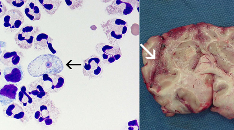5 Naegleria fowleri is a freshwater parasite that can enter the human brain through the nasal cavity while swimming in freshwater lakes or poorly sanitized pools. The parasite destroys human brain tissue and has a fatality rate of 97%.Image credits: cdc.gov