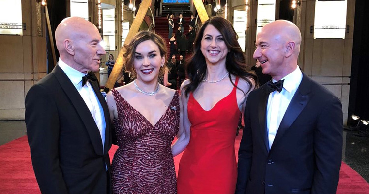 5 In 1992, Bezos met his wife (now separated), MacKenzie, a researcher cum novelist in New York. They have adopted their daughter from China and have four kids in all.Jeff Bezos with his wife Mackenzie Bezos. Image credits: Jeff Bezos/Twitter