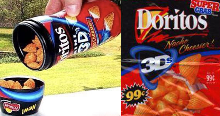 2 3D Doritos: The 3D puff pockets launched in the 1990s were sadly discontinued in 2000. The company released a revamped version which failed to leave a mark.Image credit: breadandcircus/tumblr