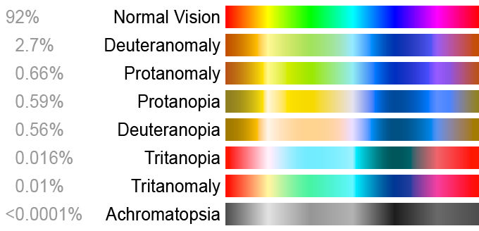 Common types of colorblindness with their respective color spectrum. Image Source: wikimedia.org