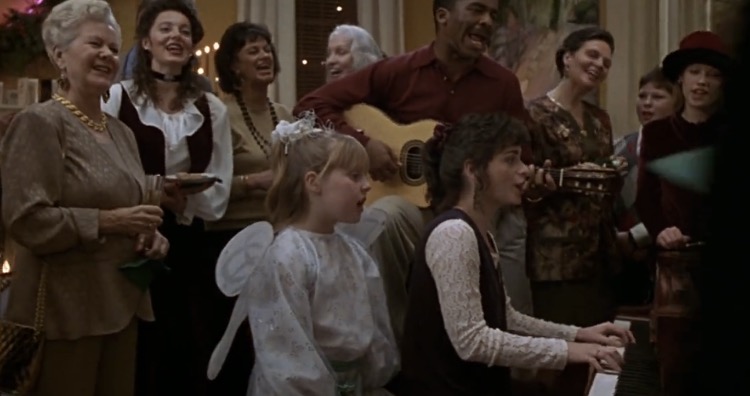 7 The end of the movie was shot first as the set was needed to be clean for the Christmas scene. After this, the rest of the movie was shot, and the set was slowly destroyed with each scene. The Christmas scene from the movie. Image Credit: TriStar Pictures