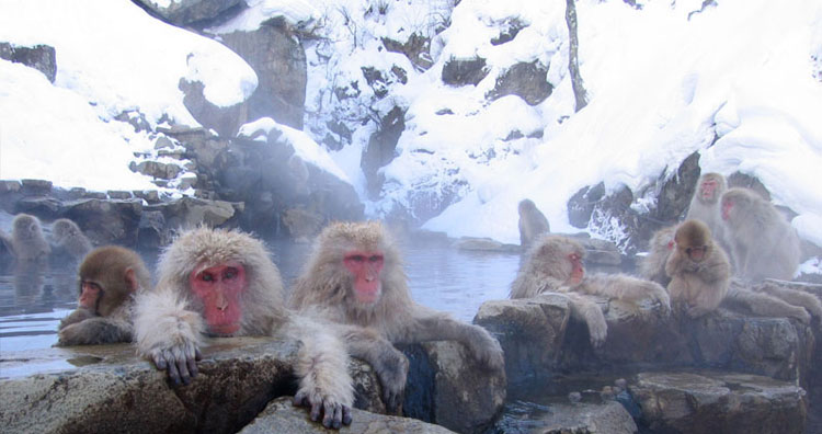 The macaque monkeys in Japan probably have a better life during the winter season than most humans on Earth. During the extreme winters, the older macaques take dips in hot spring and spend their time relaxing there. The younger ones also take dips in the hot springs, but they do not stay in as long as the adults. Instead, they engage in playful snow fights with other young ones. They like to chase each other and wrestle without adult supervision as the adults lie relaxing in the hot springs.