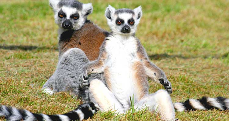 You might have noticed cats and dogs lazily soaking up warmth by lying under the winter sun. The ring-tailed lemur takes sunbathing one step further by doing it communally. Most mornings, these creatures gather together in groups consisting of 15-20 individuals. They huddle together and sit on the ground facing the sun with their arms and legs outspread. Their sitting position is somewhat similar to the lotus position of yoga.
