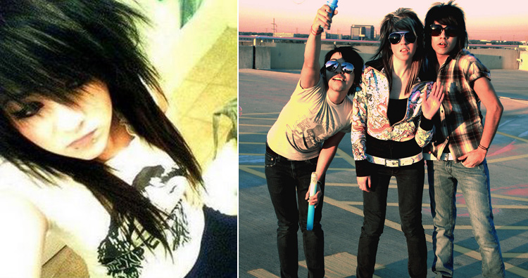 The look was commonly characterized by studded belts usually worn two or three at a time, writing things on a piece of paper and taking a selfie with it, bangs that defied gravity with very short layers, crazily addicted to Pete Wentz, his signature music, and clandestine moves. During the end of the millennium, the boundaries were blurred with many people moving out of the phase. (source)