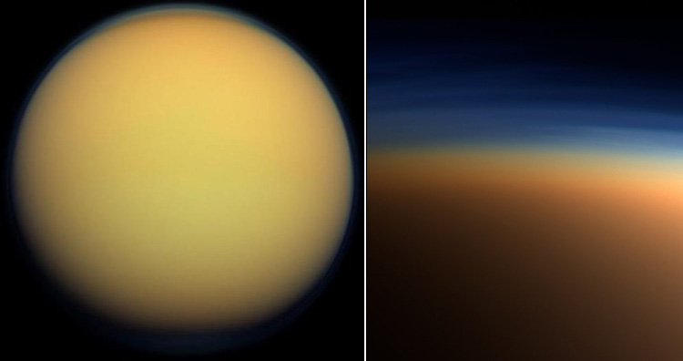 6 On Saturn’s moon Titan, the gravity is low enough and the atmosphere so thick, that by attaching small wings to your arms, you could fly like a bird.(Image 2) True-color image of layers of haze in Titan’s atmosphere. Image credits: Nasa, Wikimedia