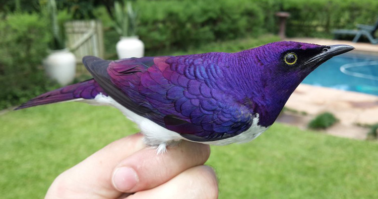 The majestic amethyst starling is a sight to behold because of its striking amethyst color. The amethyst starling is also popularly known as the “plum-colored starling” or “violet starling.” The bird is native to tropical Africa and is known for its purple and indigo feathers with a bit of green and browns. The birdâs feathers resemble a galaxy of iridescent features due to their microstructure. The featherâs microstructure refracts light like a prism exhibiting a riot of colors.