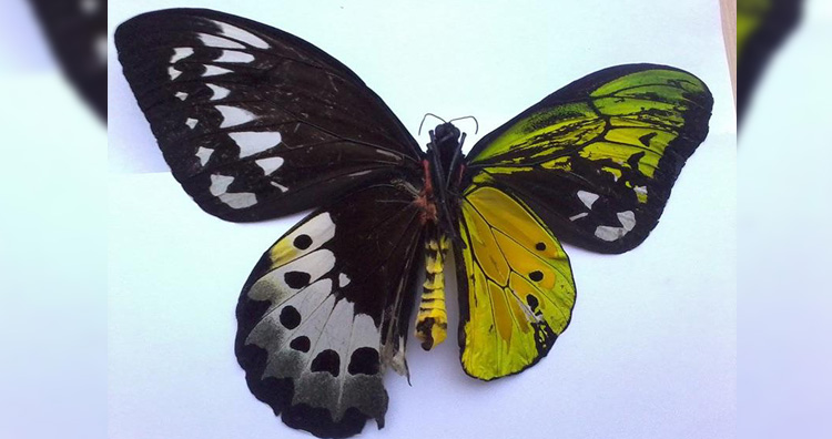 The Papilio androgeus mosaic gynandromorphs are most unique as they display both male and female characteristics. The butterfly exhibits bilateral gynandromorphism that can be noticed in its contrasting wing colors. If you observe closely, the yellow color represents male characteristics and blue color exhibits female characteristics. (1, 2)
