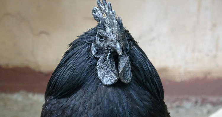 The chicken is entirely black including its beak, tongue, meat, bones, and internal organs. The black color is a result of excess pigmentation caused by the tissues by a genetic condition known as fibromatosis. Though these birds are pigmented, they lay normal, cream-colored eggs. These unique breeds have retailed for around $2,500 in the United States as it is considered to be one of the rarest breeds. (source)