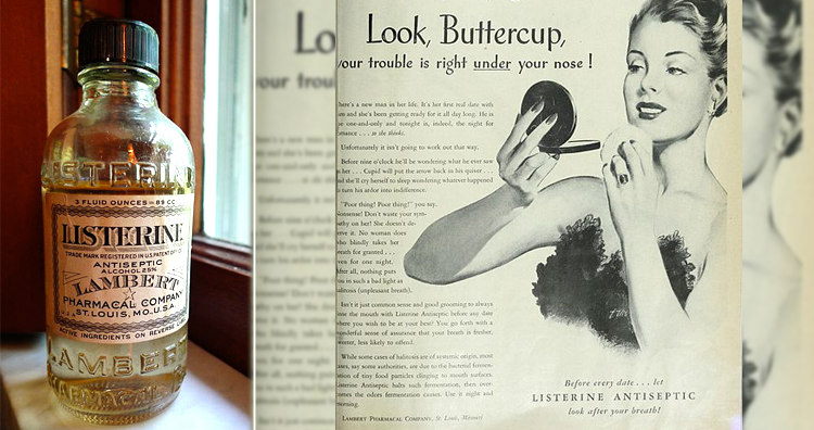 At first, Listerine was sold a cure for gonorrhea and a floor cleaner. Though Lambert began promoting the product for oral care in 1895, it wasn’t until the 1920s following aggressive marketing campaigns that it became famous as a mouthwash. They pitched it as a cure for “chronic halitosis,” a medical term that most people were unfamiliar with, and the advertising was directed mostly at young women and men. According to the book Freakonomics by Steven D. Levitt and Stephen J. Dubner, bad breath wasn’t considered such a catastrophe until then. (source)