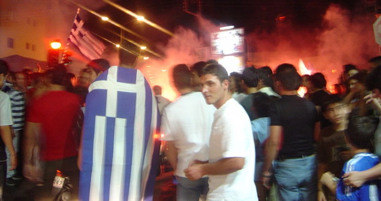 Greek fans celebrating Euro 2004 victory. Image Credit: Wikipedia