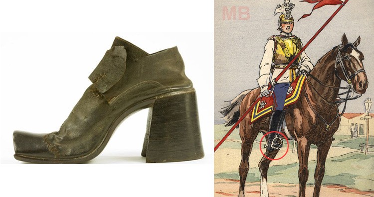 3 High heels were designed by the Persian cavalries to keep stability while shooting arrows. Later in the 17th century Europe, they were worn by noblemen as a symbol of status and then eventually transformed into a part of women’s fashion.Image credits: Bata shoe museum/BBC, Armymuseum/Wikipedia