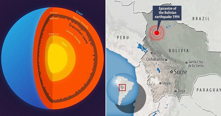 The 8.2 Bolivian earthquake had the focal point at a depth of just under 650 km. Its tremor was the first one to be measured on a modern, seismic network. These 1994 seismic recordings were studied by geophysicists recently. They studied the waves as it transitioned between layers and traveled up to 660 km. At this depth, the researchers found a division between the lower part of the mantle and its upper zone. Based on their study, the researchers concluded that there exists a zig-zagging mountain range at the meeting point of the mantle’s upper and lower parts. (1, 2, 3)